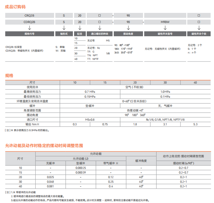 CRQ2 系列薄型摆动气缸 - 齿轮齿条式
