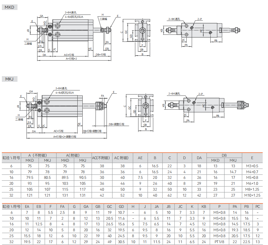 MU系列小型自由安装气缸