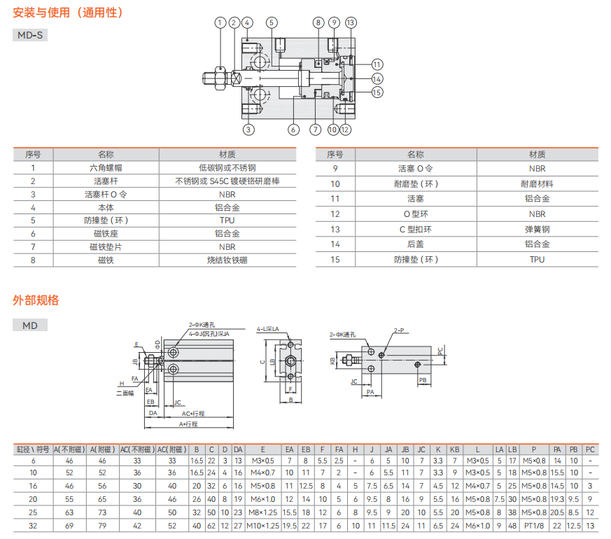 MD 系列多位置固定型气缸