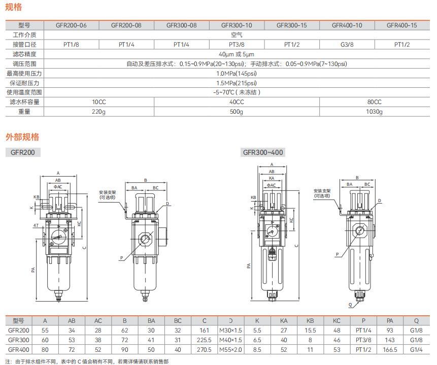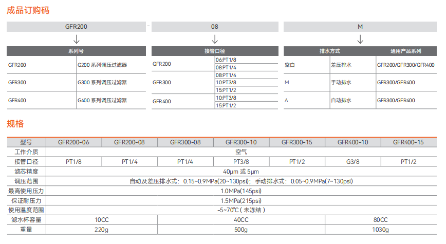 F.R.L. 组件 G 型元件 - 调压过滤器 GFR