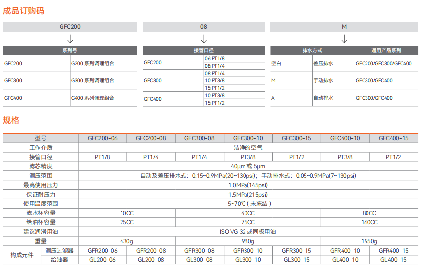 F.R.L. 组件 G 型元件 - 调压过滤器 GFR