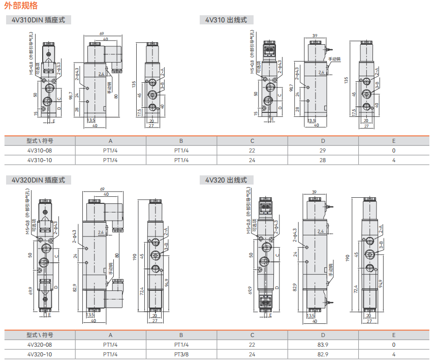 4V400 电磁阀(五口二位、五口三位)