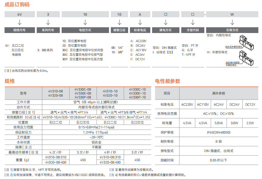 4V300 电磁阀(五口二位、五口三位)