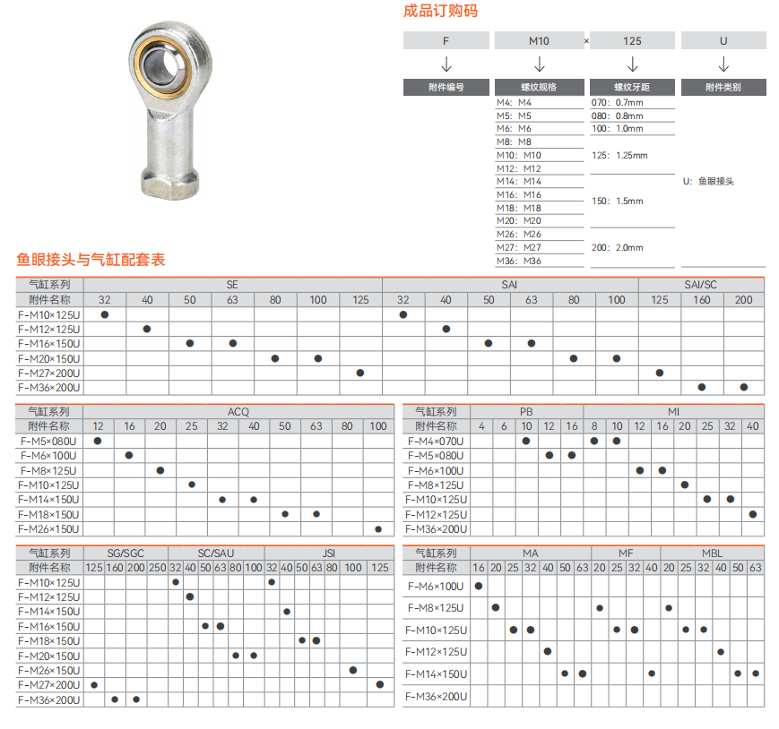 气动活塞杆端链接附件 - 鱼眼接头