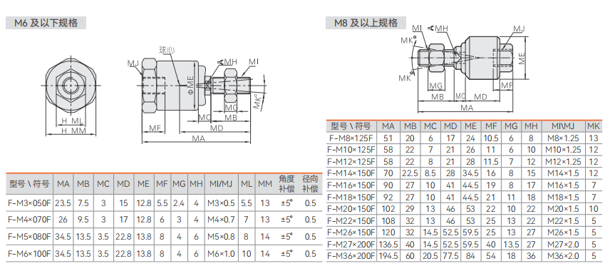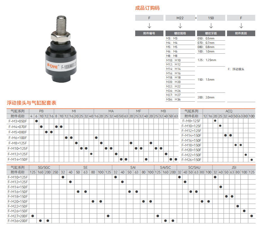 气动活塞杆端链接附件 - 浮动接头