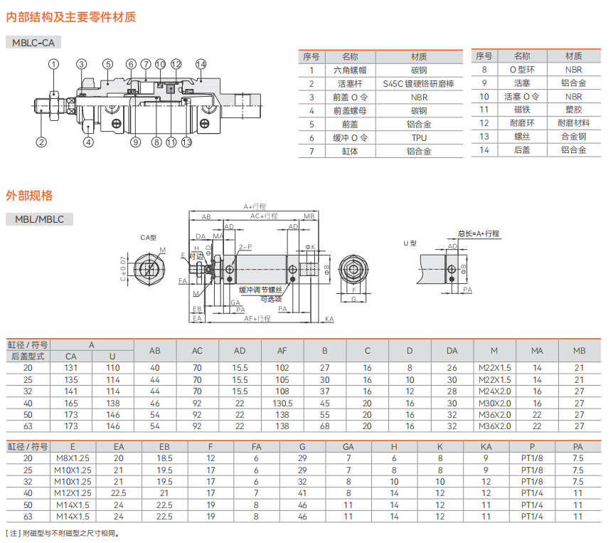 MBL 系列铝合金迷你气缸