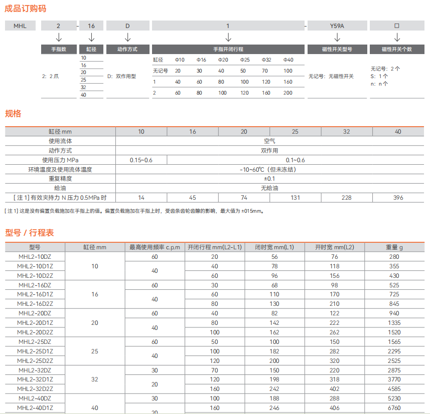 MHL2 系列平行开闭型气爪 / 宽型